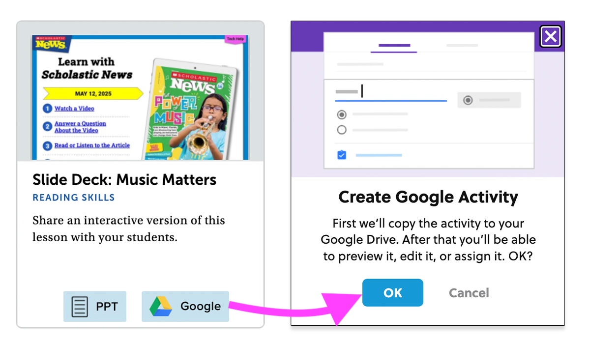Every Scholastic News cover story now includes an interactive Learning Journey Slide Deck. These guided-learning activities are easy to customize, assign, and assess. Watch this short video to learn more.